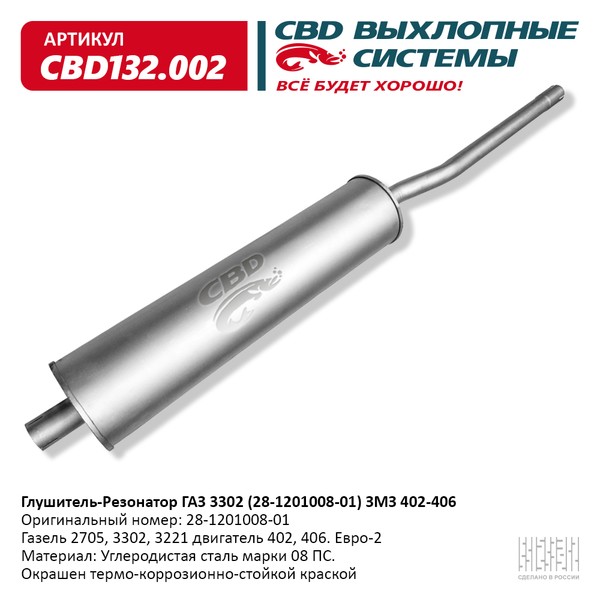 Глушитель-резонатор ГАЗ 3302 (28-1201008-01) ЗМЗ 402-406 [CBD] 28-1201008-01