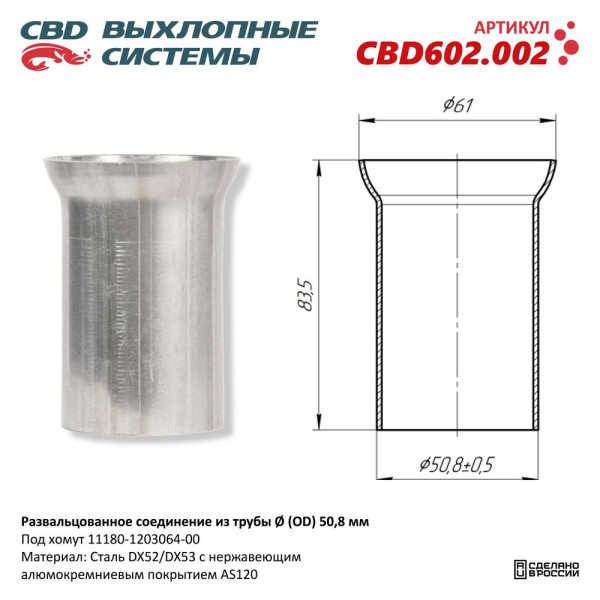 Развальцованное соединение из трубы ? (OD) 50 мм. под хомут (Нержав./Сталь) [CES OTOMOTIV]