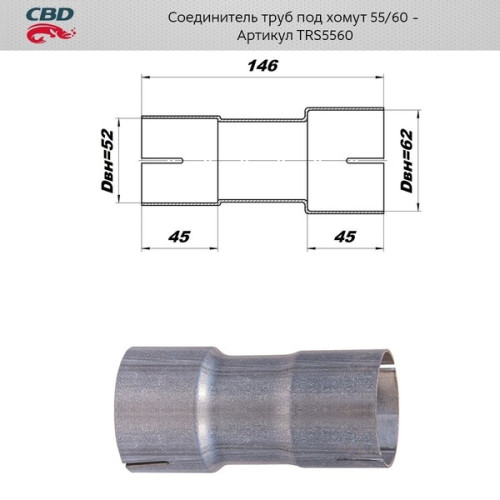 Соединитель труб под хомут. 55/60мм из нерж. алюм. стали [CBD]