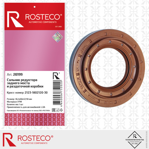 Сальник редуктора ВАЗ 2123 заднего моста и раздаточной коробки 36,1х68х12/18 "ROSTECO"