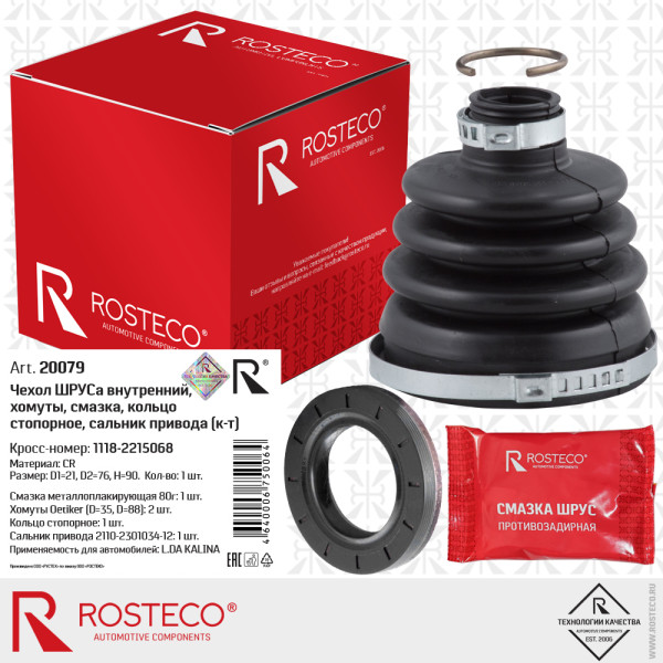 Пыльник (чехол) шрус внутрений ВАЗ 1118 внутрений (хомут+смазка) [ROSTECO]