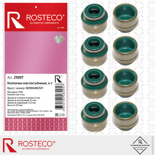 Колпачки маслосъёмные Renault (к-т 8 шт) "ROSTECO"