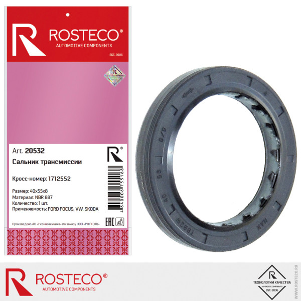 Сальник трансмиссии Ford Focus, Volkswagen, Scoda NBR 887 40x55x8 "ROSTECO"