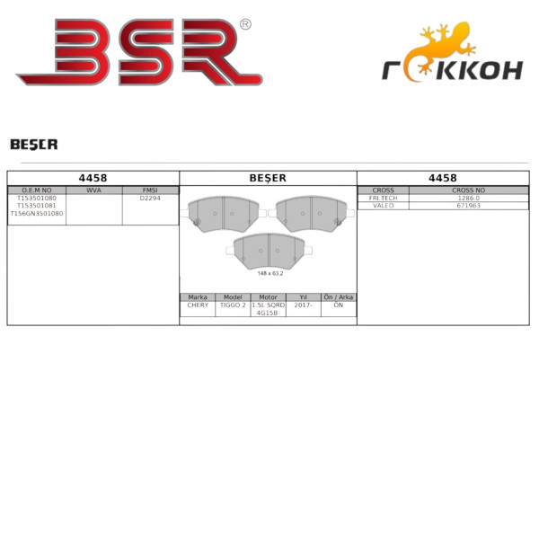 Колодка тормозная передняя Chery Tiggo 2,4,5,7,8 2019- (к-т. 4шт.) [ BESER ] 671963