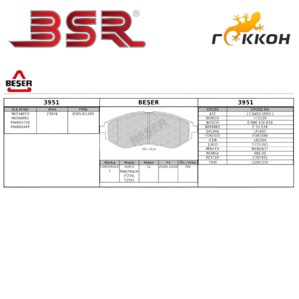 Колодка тормозная передняя Chevrolet Aveo T250,255 2008-2020 (к-т. 4шт.) [ BESER ] 2397401