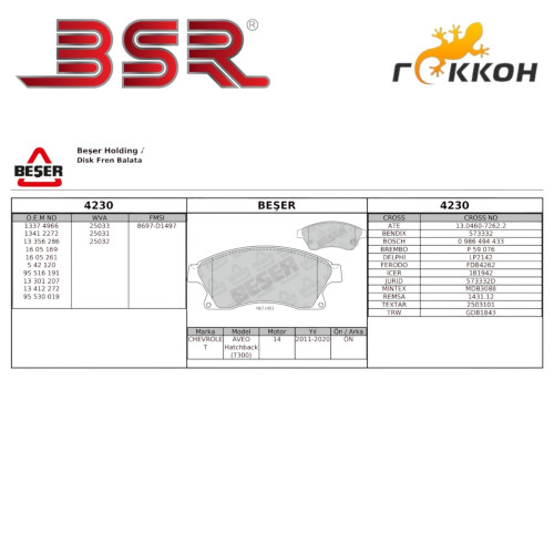 Колодка тормозная передняя Chevrolet Aveo T300, Cruze 2011-2020 (к-т. 4шт.) [ BECER ] 2503101
