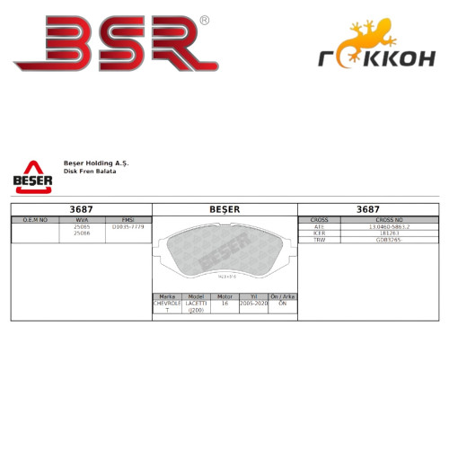 Колодка тормозная передняя Chevrolet Lacetti, Rezzo (к-т. 4шт.) [ BECER ] 96534655