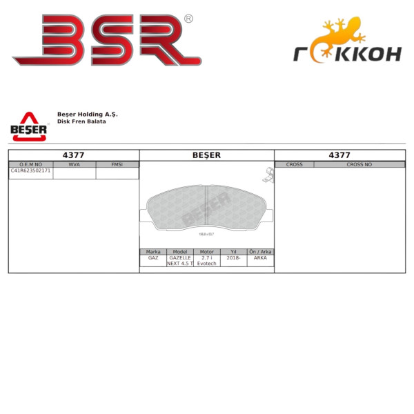 Колодка тормозная задняя ГАЗ Next 4,5т. 2018- (к-т. 4шт.) [ BESER ] C41R623502171