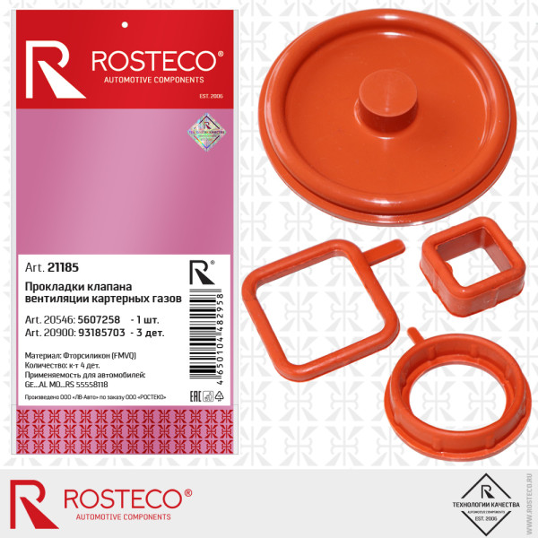 Прокладки клапана вентиляции картерных газов GM (4 шт) силикон "ROSTECO"