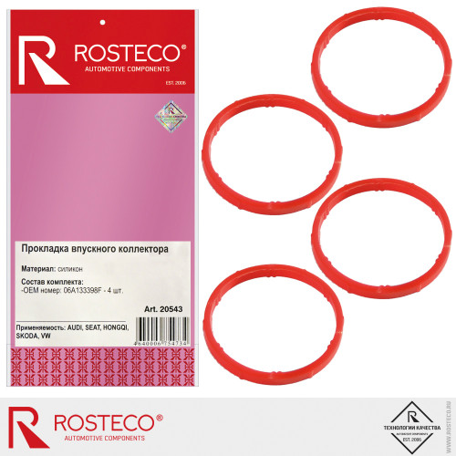 Прокладки впускного коллектора AUDI, VW силикон (к-т 4шт.) "ROSTECO"